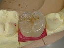 陶材はGCイニシャルのMC及びTIを使用しています。これは長石が配合されることで、透き通ってしまう 従来のガラスポーセレンに比べ、天然歯の乱反射が得られることです。又、長石の配合による熱収縮が 0.03%に抑えられ、マージン部が引かれない等形態的により良い形状築盛・焼成ができる陶材です。 Drの指示によりノリタケAAAも同時に使用しています。 使用金属はノンプレシャスメタルにデンケンスナイパーND、セミプレシャスに山本貴金属クインテス52、 プレシャスに山本貴金属スーパークリスタルKD-5を使用しています。